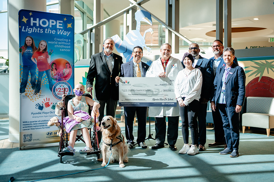 Representatives with Hyundai Hope On Wheels presented a $400,000 Scholar Hope Grant to Theodore Johnson, MD, PhD, at the Children’s Hospital of Georgia to support pediatric brain cancer research at Augusta University’s Georgia Cancer Center.