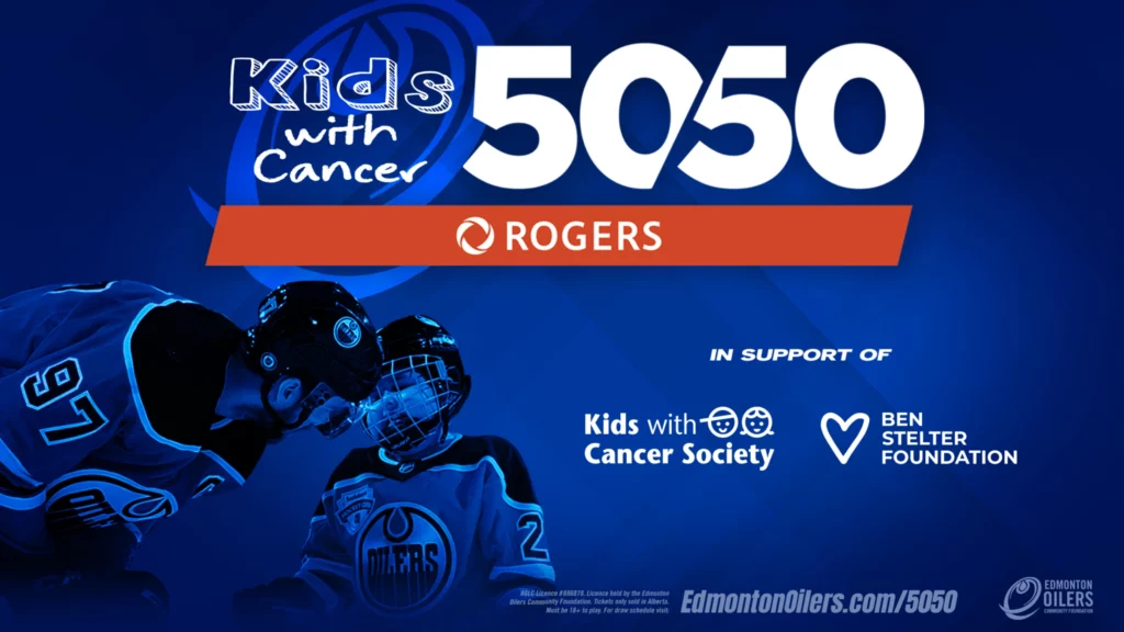EDMONTON, AB – The Edmonton Oilers Community Foundation (EOCF) is calling on Albertans to come together in support of kids in Oil Country currently fighting cancer through the Kids with Cancer 50/50 presented by Rogers. This special raffle will run from November 29 to December 7 after the Oilers host the St. Louis Blues at Rogers Place, and is in support of the Ben Stelter Foundation and Kids with Cancer Society.