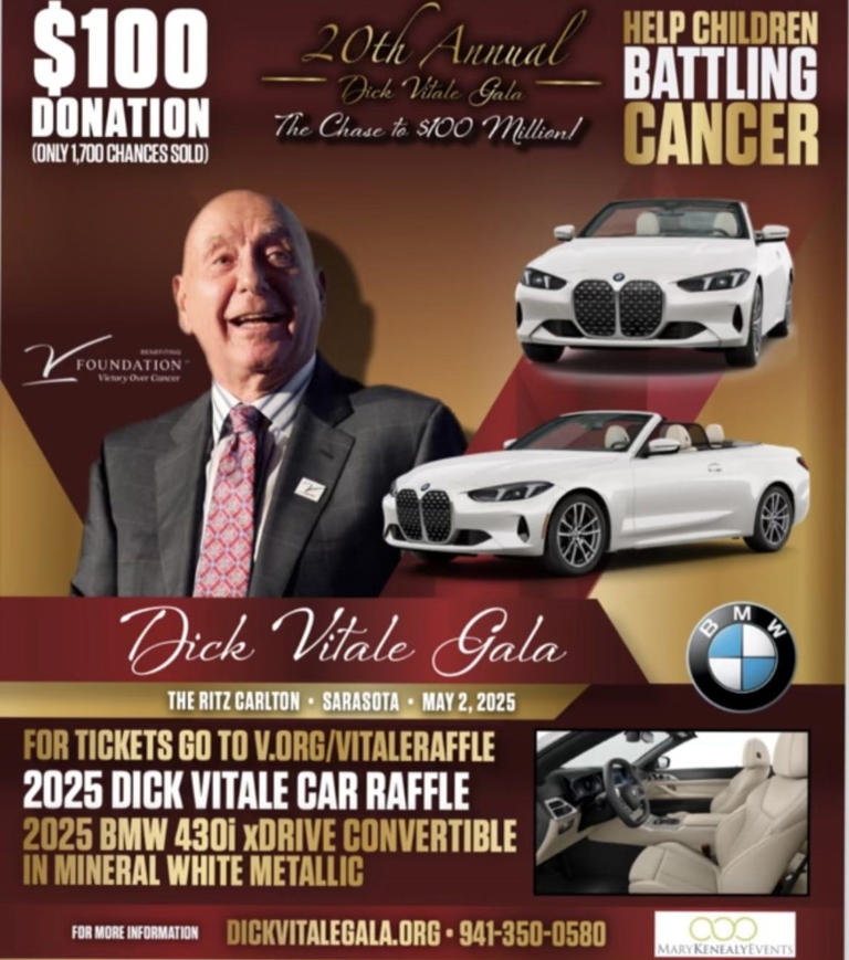 To benefit The V Foundation for Pediatric Cancer Research, the 85-year-old Lakewood Ranch resident and ESPN college basketball analyst is raffling off a 2025 BWM 430i xDrive hybrid convertible. Each chance to win the car is $100, and only 1,700 opportunities are being made available.